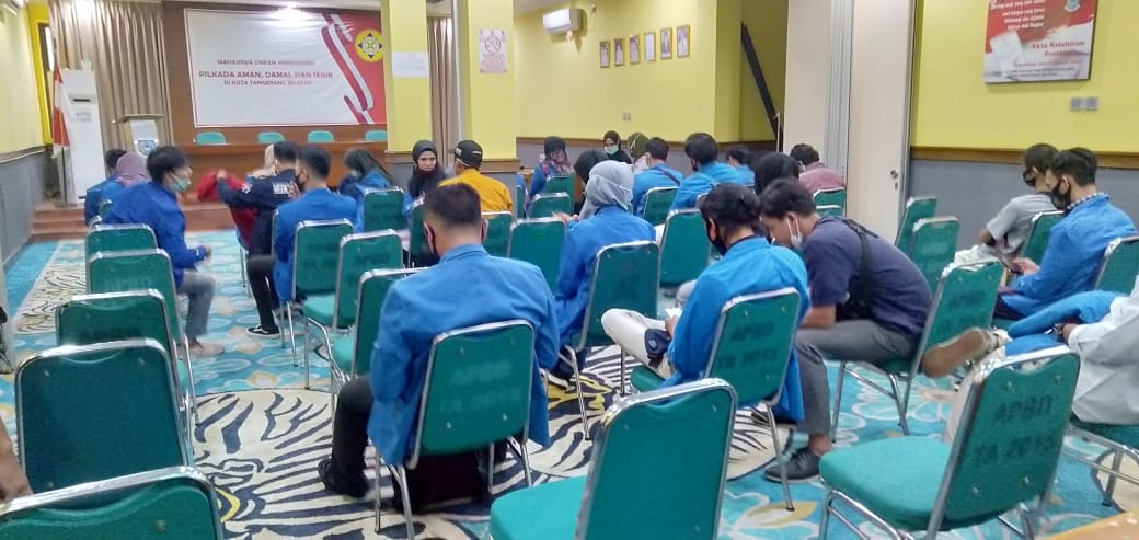 PENJURU.ID | Tangsel – Mahasiswa Universitas Pamulang (UNPAM) Tangerang Selatan menggelar Deklarasi Mendukung Pilkada Aman, Damai dan Sejuk Di Kota Tangerang Selatan yang bertempat Aula Kecamatan Pamulang Jl. Siliwangi Raya No. 1 Kec. Pamulang, Kota Tangsel. Selasa (10/11/2020) pukul 09.30 WIB.