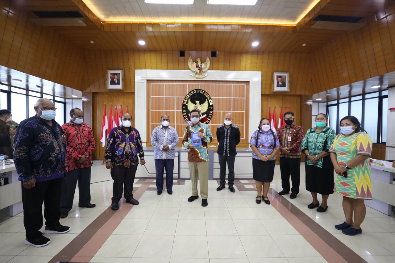 PENJURU.ID | Jakarta – Pimpinan dan Anggota Majelis Rakyat Papua bertemu dengan Menko Polhukam Mahfud MD, di Gedung Kemenko Polhukam, Jumat sore (11/6). Mereka melakukan dialog seputar persoalan-persoalan di tanah Papua dan menyampaikan aspirasi rakyat Papua dan direspon dengan baik oleh Menko.
