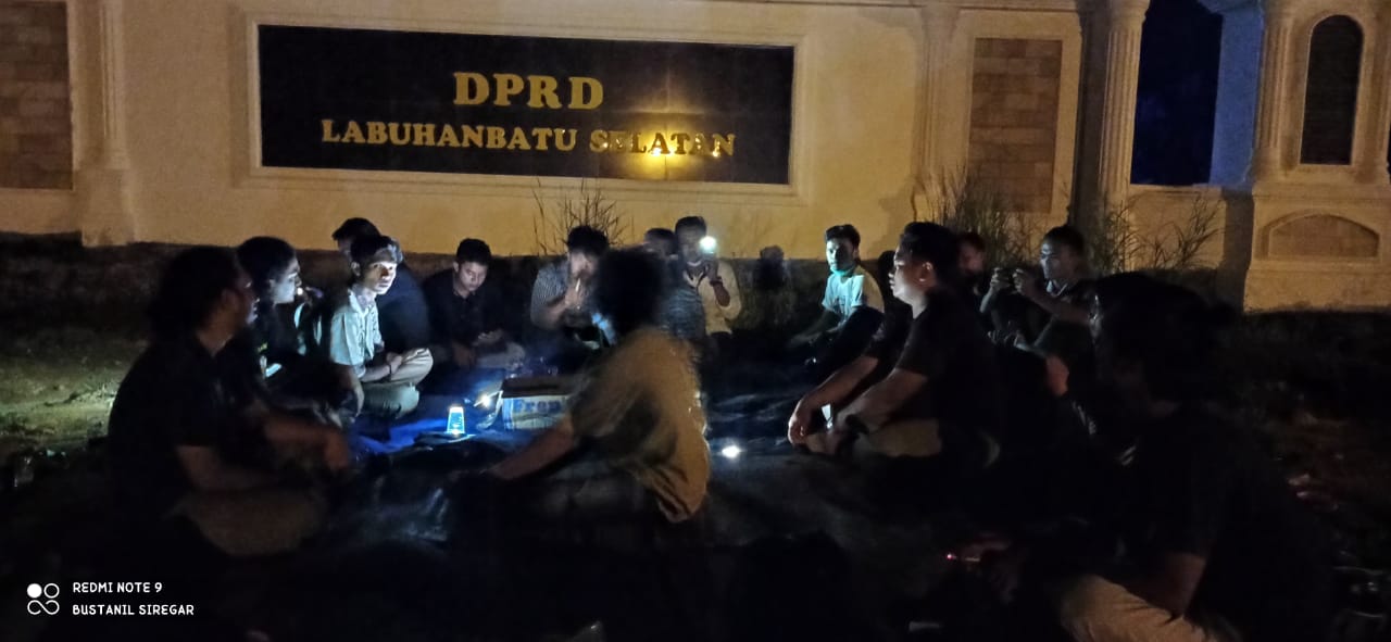 Sampai dengan pukul 19.45 WIB, Massa Aksi masih terlihat beristirahat di depan Gedung DPRD Kabupaten Labuhanbatu Selatan.