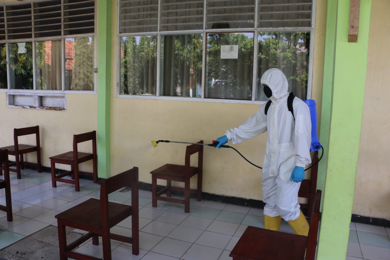 Dwi Yanto Nugroho juga menjelaskan bahwa jelang tahun ajaran baru, Den Gegana Sat Brimob Polda Banten lakukan penyemprotan disinfektan di sekolah-sekolah.