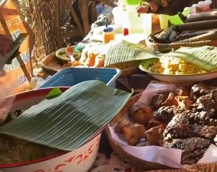 Di pasar ini, pengunjung juga dapat merasakan wisata kuliner yang unik, yaitu berbagai makanan tradisional, seperti cenil, gatot, tiwul, pecel, tahu/tempe bacem, pisang goreng, singkong goreng, dan lain-lain dengn menukarkan rupiahnya dengan uang gerabah senilai 2.000.