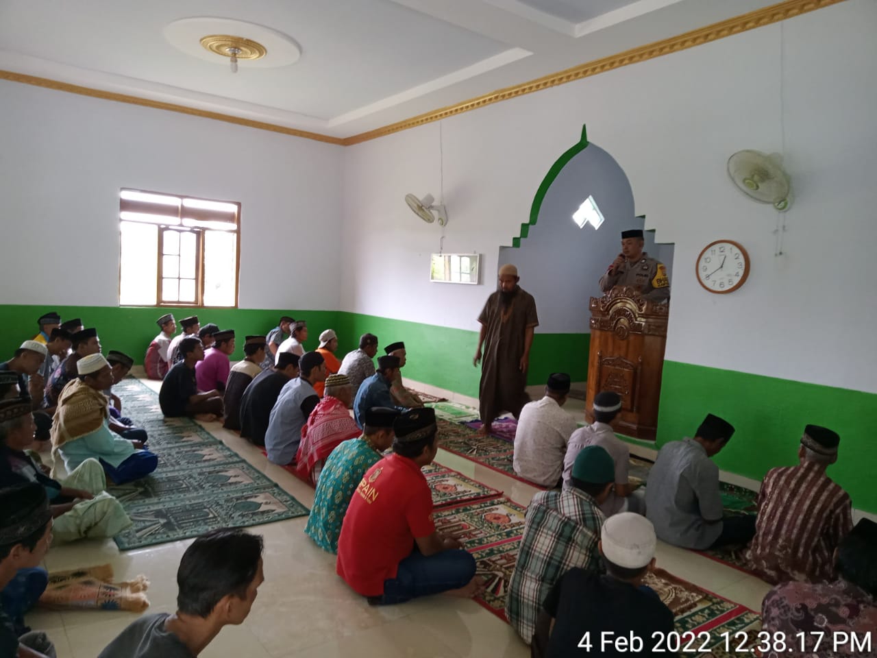 PENJURU. ID | Bhabinkamtibmas Desa Kareloe Aiptu Sahabuddin bersama Kades setempat melaksanakan safari Jum’at di Mesjid Dusun Katangngoro Kecamatan Bontoramba, Jum’at (4/2/2022)