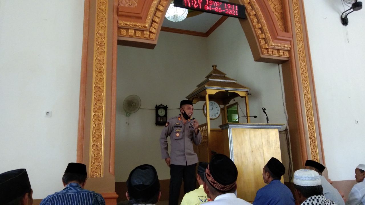 PENJURU. ID | Bantaeng – Kapolsek Bissappu Polres Bantaeng, IPTU Ahmad.K, SH, MH melakukan kegiatan safari Jum’at di masjid Babul Uman, Desa Bonto Salluang, kecamatan Bissappu, Kabupaten Bantaeng, Sulawesi Selatan, Jum’at, (04/06/2021).