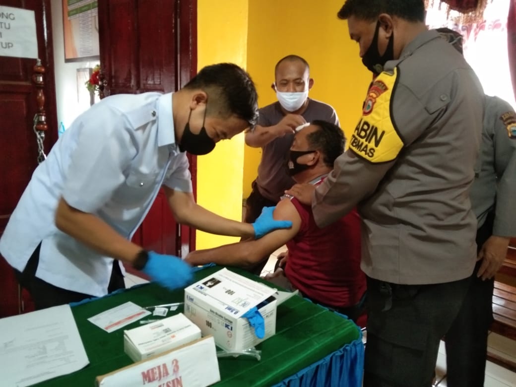 “Vaksin Sinovac Telah Dinyatakan Aman Oleh Pemerintah melalui dinas kesehatan dan Mempunyai sertifikat halal dari MUI.” terang Kapolsek.