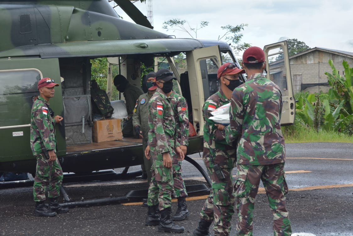 PENJURU.ID | Pontianak – Kodam XII/Tanjungpura hari ini Sabtu 30/5/2020 kembali melanjutkan membantu Pemerintah Provinsi Kalimantan Barat mendistribusikan bantuan beras ke daerah sulit yaitu wilayah Sungkung, Kecamatan Siding, Kabupaten Bengkayang. Dengan menggunakan helikopter bantuan diangkut untuk nantinya didistribusikan kepada masyarakat di wilayah Sungkung yang saat ini terdampak Covid-19.