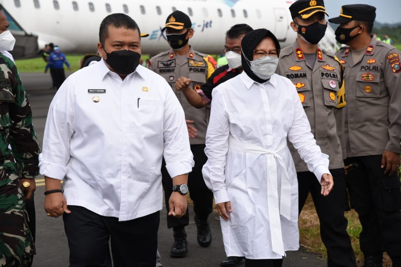 PENJURU.ID | TAPSEL – Bupati Tapanuli Selatan (Tapsel), H Dolly Pasaribu, SPt MM, mengucapkan terima kasih atas kehadiran Menteri Sosial RI, Tri Rismaharini, ke Kantor Camat Marancar, guna santuni korban longsor yang terjadi di kawasan tersebut, Rabu (19/5).