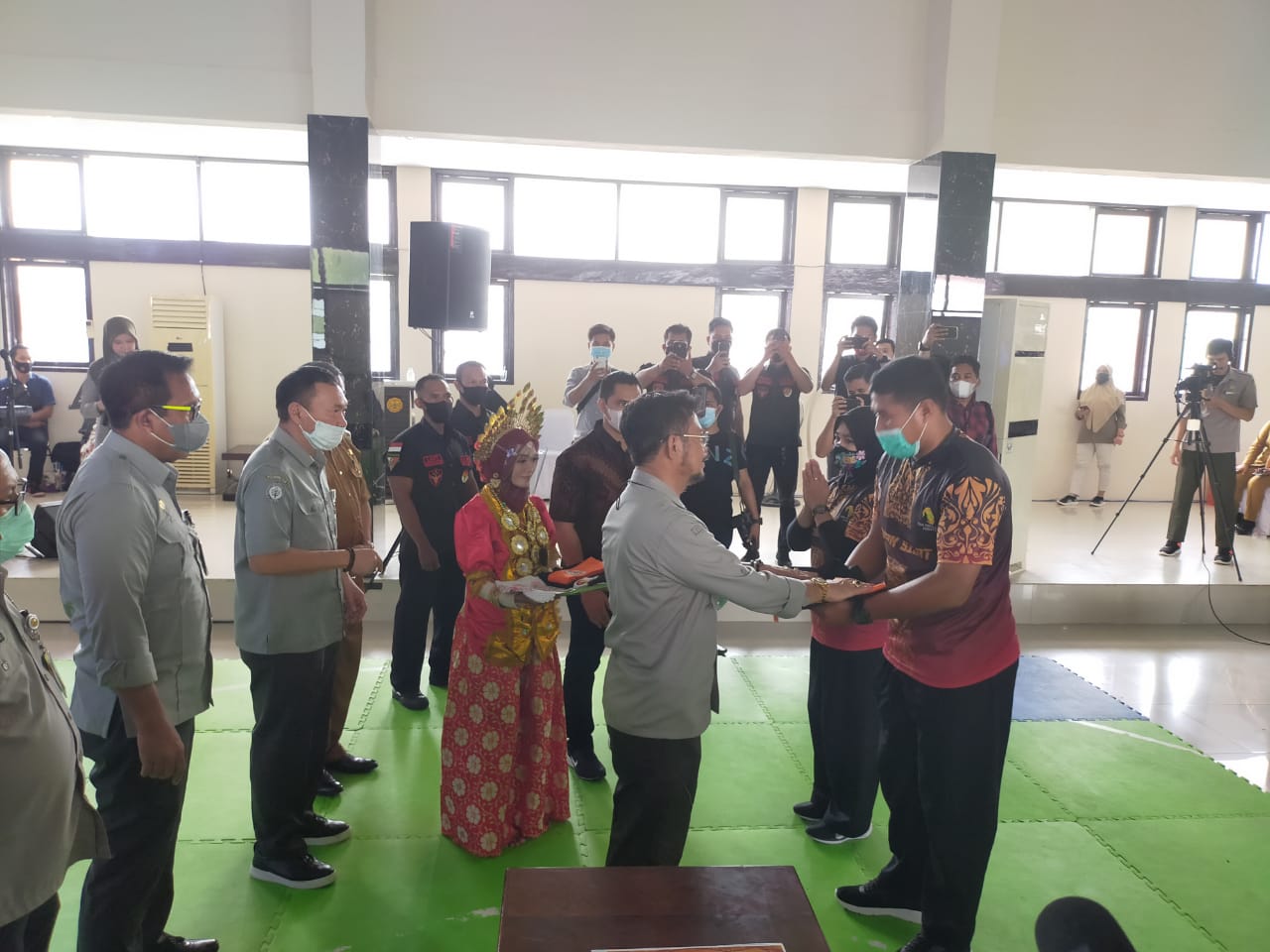 Pelaksanan penandatangan MOU antara pemerintah Kabupaten Gowa dengan Ditjen Peternakan dan Kesehatan hewan kementeriannRI dalam hal ini PT CisaruaMountain Diary (Cimory) dan Universitas Hasanuddin tetap mematuhi protokol kesehatan dengan menggunakan masker dan menjaga jarak.