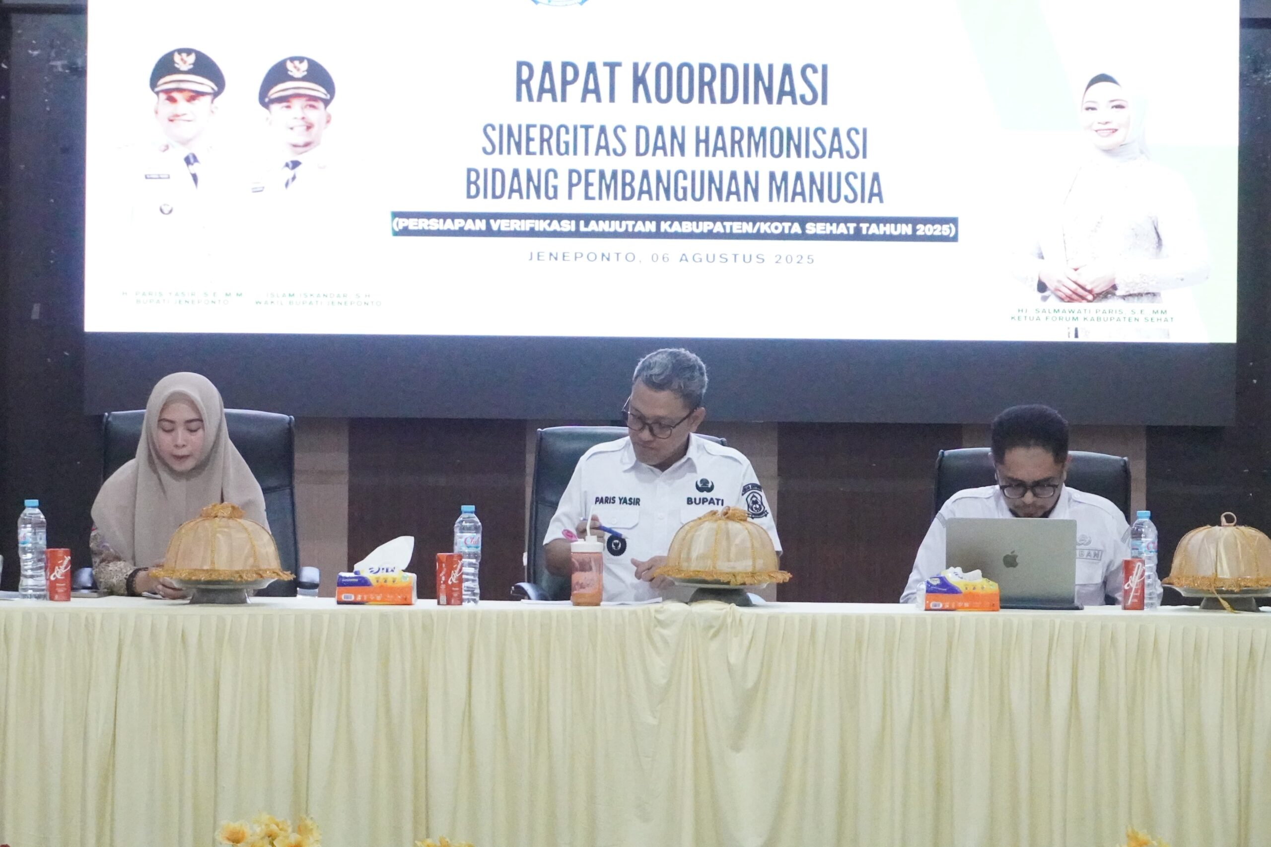 Komitmen ini ditandai dengan digelarnya Rapat Koordinasi Sinergitas dan Harmonisasi Bidang Pembangunan Manusia, yang berlangsung di Aula Kalabbirang, Rumah Jabatan Bupati Jeneponto, pada Selasa (06/08/2025).