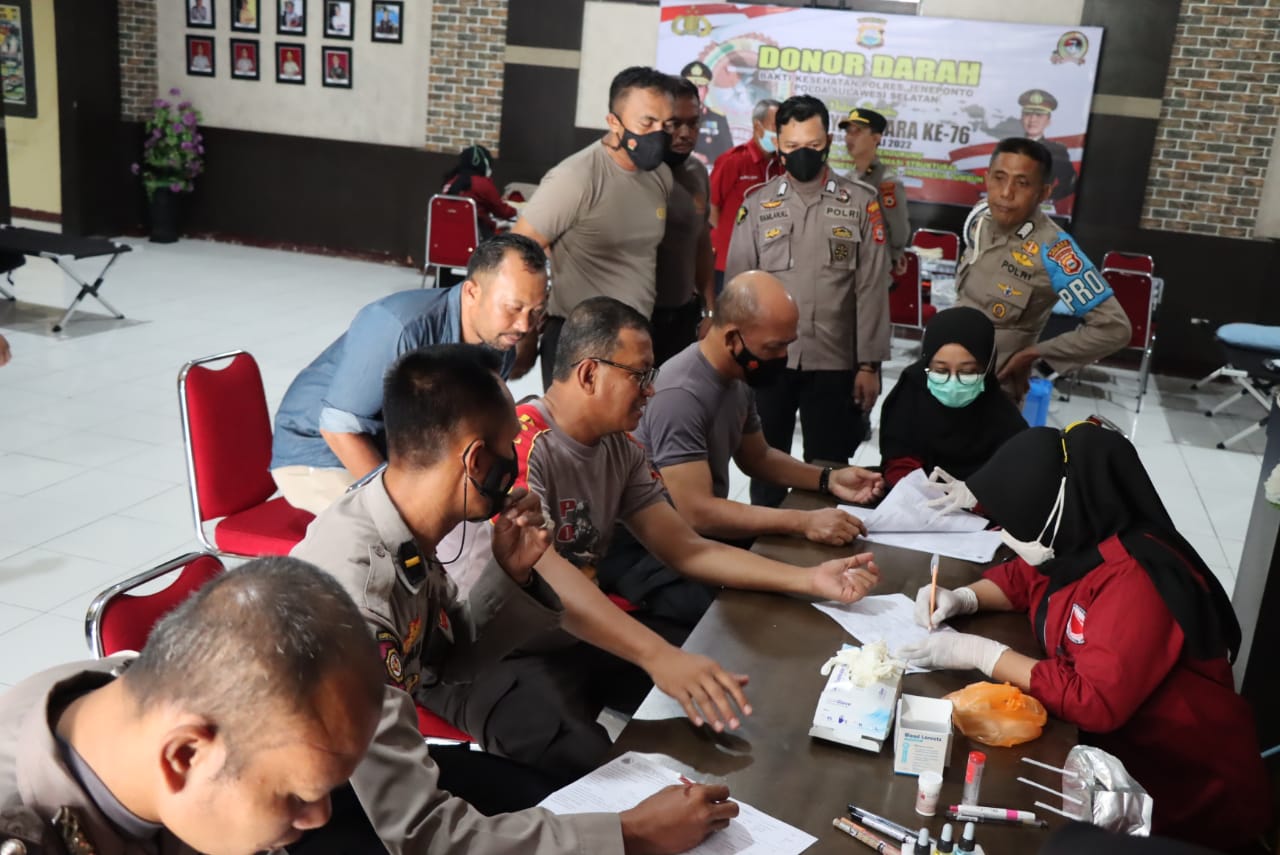 Kegiatan donor darah, selain menjadi rangkaian Hut Bhayangkara Ke-76 tahun ini juga merupakan wujud nyata kepedulian polres jeneponto terhadap masyarakat yang membutuhkan pasokan darah terlebih di masa pandemi covid-19 seperti ini,sekaligus untuk membantu ketersediaan stok darah di PMI cabang jeneponto.