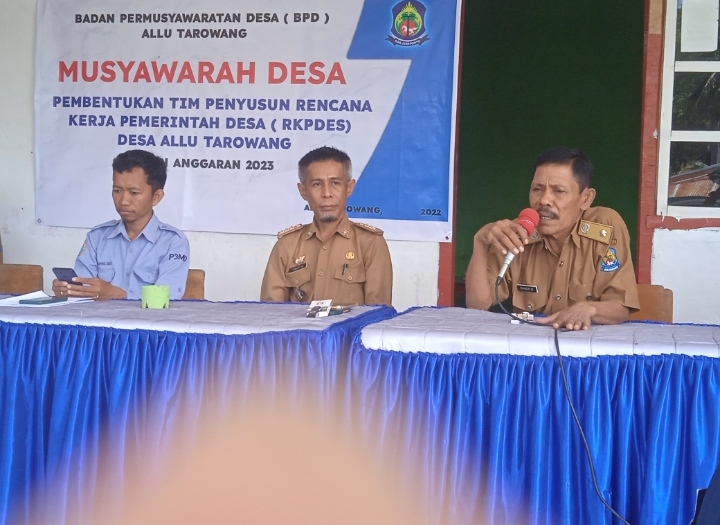 Hadir dalam pelaksanaan Musdes selaku tuan rumah Kades Allu Tarowang Mansur, Camat Tarowang Taufik, Ketua BPD bersama jajarannya, Ibu Pendamping Desa dan Kecamatan, Babinsa, Sekdes setempat bersama jajaran perangkat desa tokoh agama, tokoh masyarakat, pemuda pemudi.