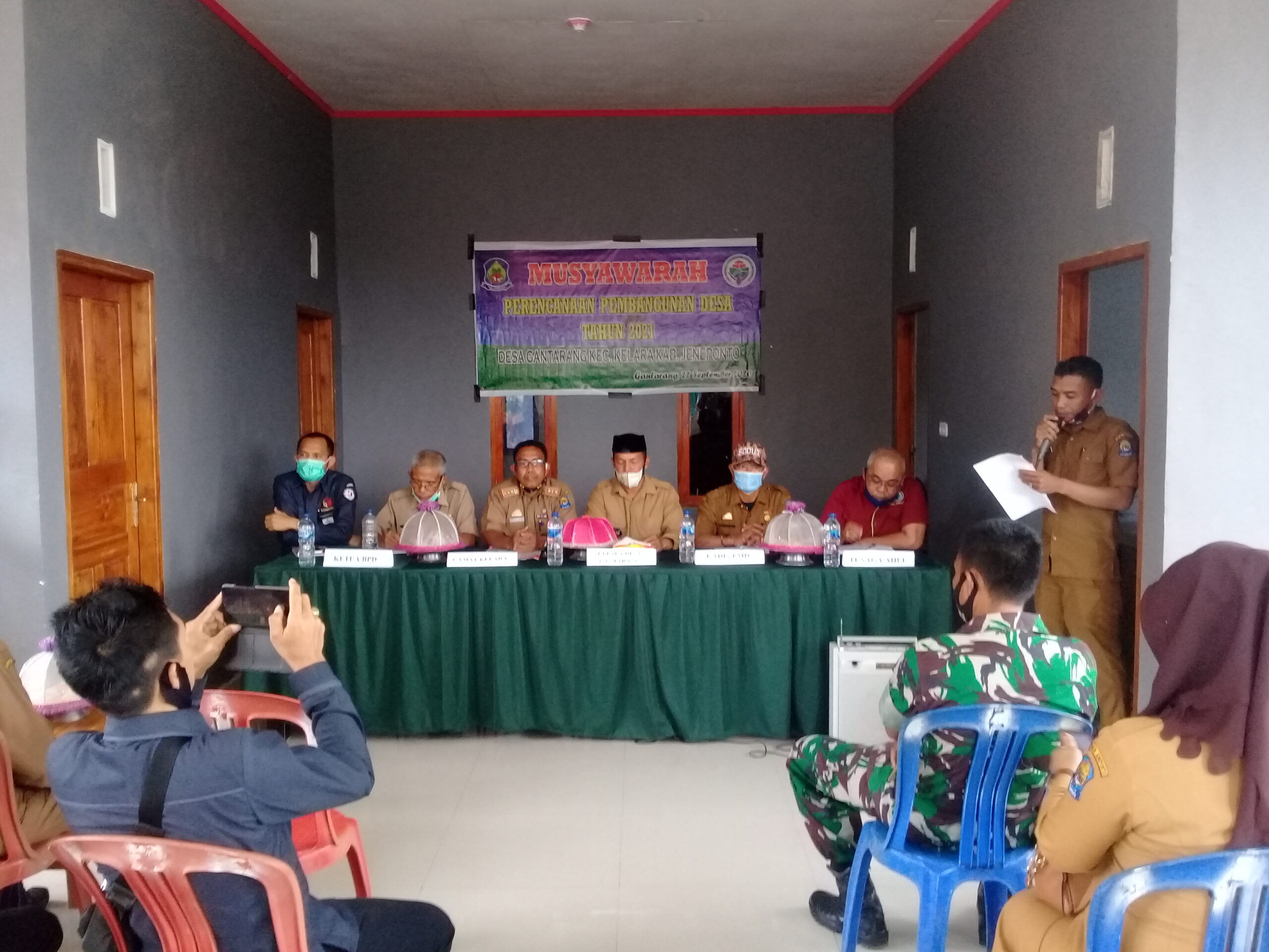 PENJURU. ID | Jeneponto – Pelaksanaan Musyawarah Pembangunan Desa (Musrenbangdes) Gantarang dalam perencanaan tahun anggaran 2021 yang dilaksanakan di Balai Kantor Desa Gantarang Kecamatan Kelara Kabupaten Jeneponto pada hari selasa (22/09/2020)