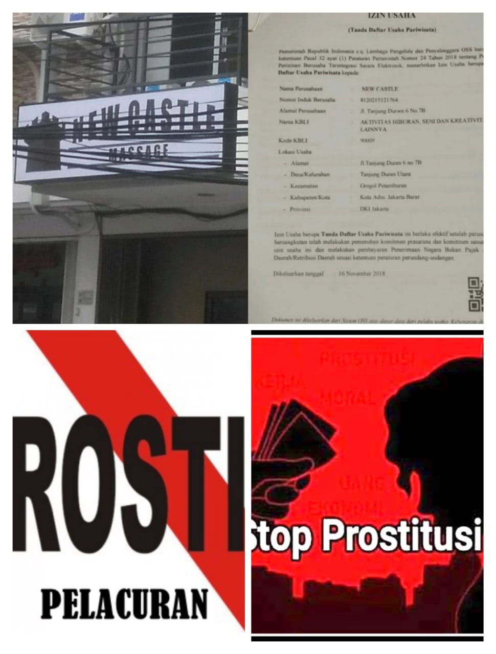 PENJURU.ID| Jakarta – Viralnya Prostitusi terselubung berkedok massage New Castle beroperasi tanpa ijin dan berada di daerah Zona Kuning jln Tanjun Duren Barat VI no 7b RT 11 RW 07 Kel tanjung Duren Utara kec gropet, Jakarta barat. Membuat pertanyaan besar bagi warga masyarakat gimana caranya bisa beroperasional selama 7th tanpa tersentuh hukum, hasil investigasi tim senyap di lapangan sampai Jumat malam 12 Desember 2025, masih tetap buka dan tidak ada teguran dari kelurahan Tanjung Duren Utara, kecamatan Grogol Petamburan, Pemkot Jakarta barat dan APH, informasi yang berkembang di masyarakat ownernya rajin berkoordinasi dengan oknum kelurahan, kecamatan dan Pemkot Jakarta barat juga APH hingga seperti tidak tersentuh hukum, membuat warga masyarakat tanjung duren Utara bertanda tanya besar tentang lemahnya pengawasan Pemkot Jakarta barat dan APH terhadap prostitusi terselubung berkedok massage dan beroperasi di zona kuning yang jelas di larang untuk lokasi usaha apalagi massage plus2.