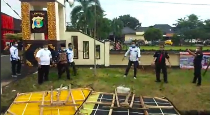 Ketua umum Persatuan Pewarta Warga Indonesia (PPWI) lalu merobohkan papan karangan bunga di halaman polres Lampung Timur.