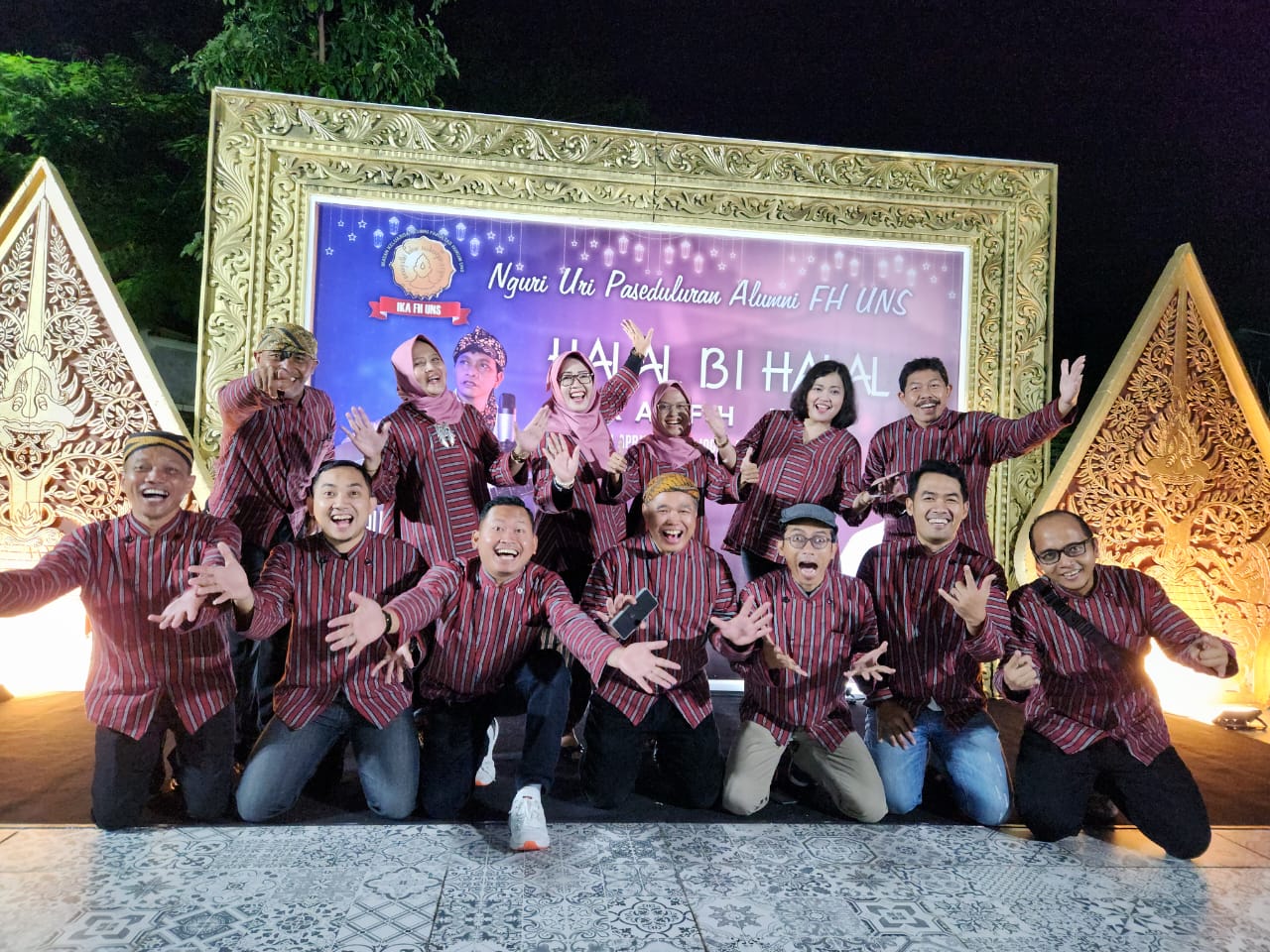 PENJURU.ID|SOLO–Alumni Fakultas Hukum (FH) Univesitas Sebelas Maret (UNS) Solo menggelar acara Halal Bihalal lintas angkatan mengangkat tema `Nguri-uri Paseduluran FH UNS`, ratusan alumni FH UNS dari berbagai angkatan hadir di acara tersebut yang menyuguhkan hiburan musik dari Wawan Teamlo, Senin malam (24/4/2023) di Joglo Javalogi, Kentingan.