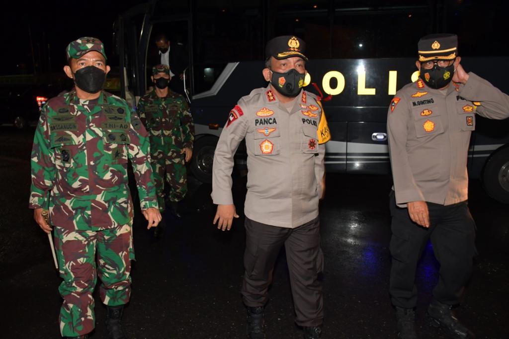 PENJURU.ID | Medan – Panglima Komando Daerah Militer I Bukit Barisan (Pangdam I/BB Mayjen TNI Hassanudin SIP., MM, bersama Kapolda Sumut RZ Panca Putra gelar apel gabungan dan meninjau langsung Pos Pam Ops Ketupat 2021, Rabu (12/5/2021) malam.