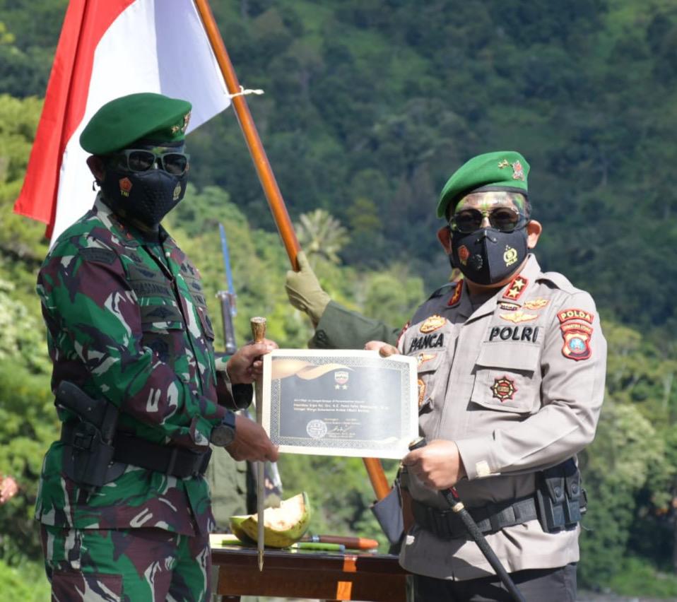 PENJURU.ID | Simalungun – Panglima Komando Daerah Militer I Bukit Barisan Mayjen TNI Hassanuddin SIP, MM Mengangkat Kepala Kepolisian Daerah Sumatera Utara (Kapoldasu) Irjen Pol RZ Panca Putra Simanjuntak menjadi warga kehormatan Kodam I/Bukit Barisan dilaksanakan di Pantai Haranggaol Simalungun, Pematang Siantar, Sumut, Jumat (2/7/2021).