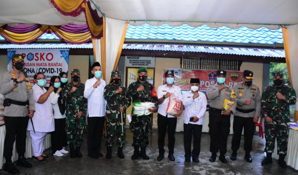 Usai rapat Pangdam I/BB beserta rombongan meninjau Pos pelaksanaan PPKM Mikro di Kelurahan Buluh Kasap, kecamatan Dumai Timur dan memberikan bantuan kepada personel Satgas PPKM Kecamatan Dumai Timur.