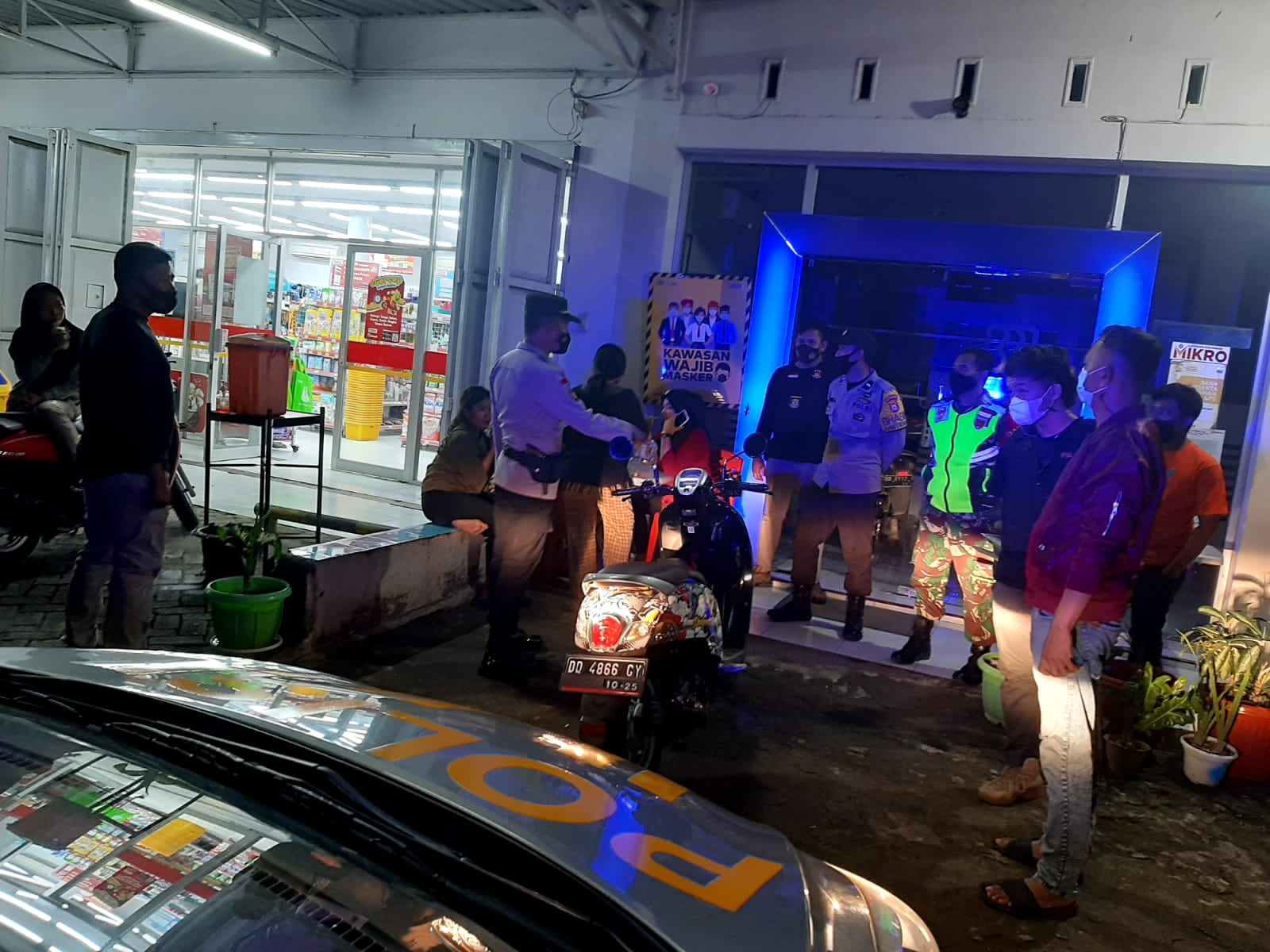 “Denga memakai masker, cuci tangan, aga jarak, hindari kerumunan, membatasi mobilisasi dan interaksi guna cegah penyebaran wabah virus covid-19 di masa pandemi.” imbau para personil gabungan yang dipimpin Iptu Yasiruddin