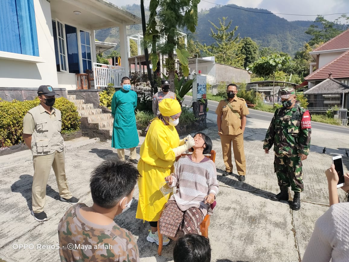 “Di tempat terpisah Babinsa 0820/08 Sukapura juga sedang melakukan pemantauan Swab Antigen kepada semua karyawan pelaku wisata, di penginapan Vila Lusi, dengan Surveyland Puskesmas Sukapura, beserta Nakes Puskesmas Sukapura, Staf Kecamatan Sukapura, relawan Tagana, sebanyak 14 orang karyawan vila Lusi di Swab Antigen, dengan hasil Negatif Corona, jelas,” Sertu. Widodo.