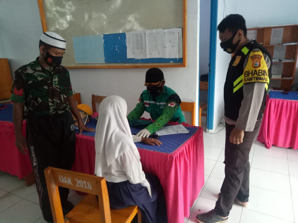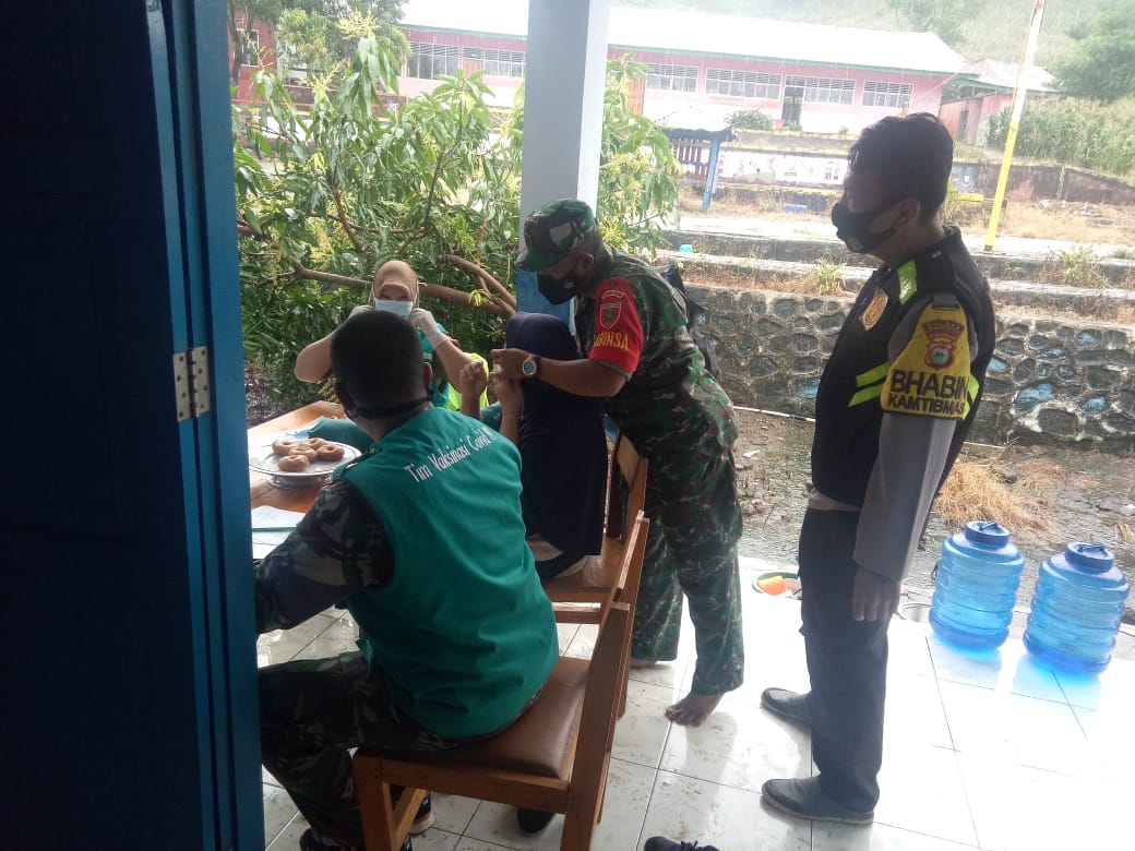 Seperti yang terlihat di desa tanammawang, 2 Kamtibmas setempat memantau pelaksanaan pemberian vaksinasi yang di selenggarakan oleh tim vaksinator dari Puskesmas Bulusibatang dan tim Polkes Kodim 1425 Jeneponto.