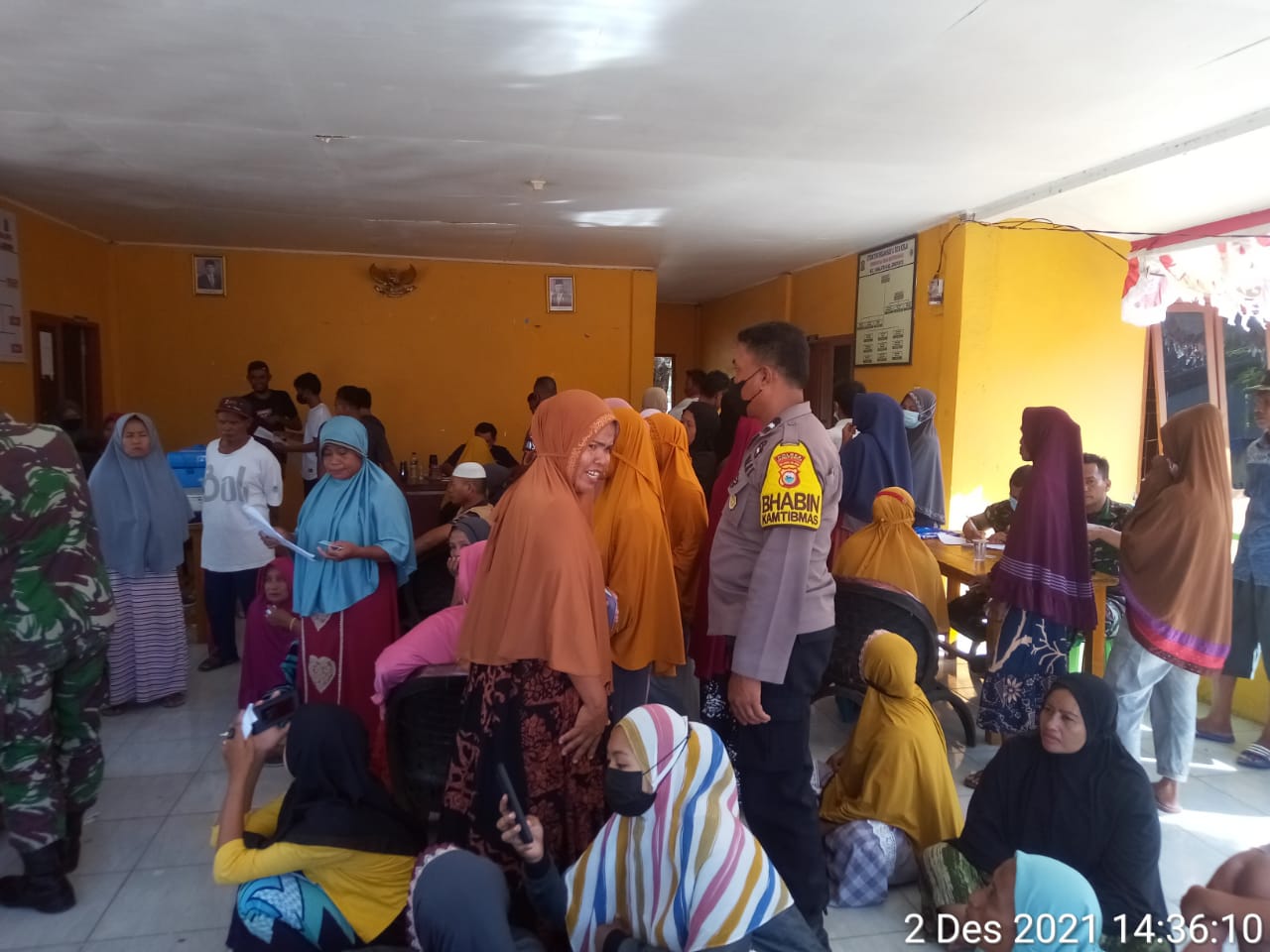 Bhabinkamtibmas desa bontosunggu Aipda Abd Rahim bersama babinsa Serda Ramli turut memantau pelaksanaan vaksinasi Covid-19 tahap I dan II kepada warga setempat yang diselenggarakan oleh tim vaksinator dari Kodim1425 Jeneponto.