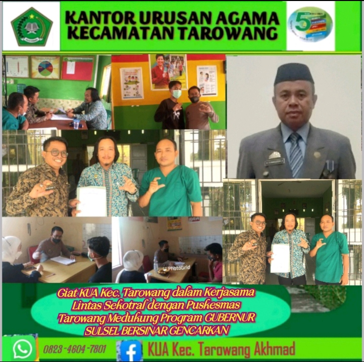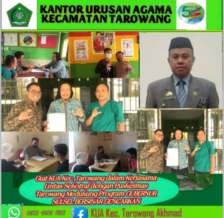 PENJURU. ID | Jeneponto – Berdasarkan Surat Edaran Bupati Jeneponto Nomor :180/496/JP/VII/2022 tentang Pelaksanaan Program Sulsel Bersinar Gencarkan (SULSEL Bersih Narkoba, Gerakan Cari Mantu Bebas Narkoba) tahun 2022. Camat, KUA, dan UPT Puskesmas Tarowang dukung penuh program Gubernur Suksel.