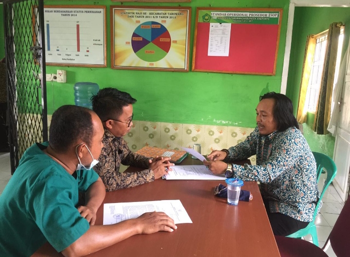 Pengelola Program Kesehatan Jiwa Puskesmas Tarowang an. Suardi Hartono, S. Kep., Ns. bersama 2 rekannya berkoordinasi dengan pihak KUA Kecamatan Tarowang yang diwakili oleh Akhmad Rewa S. HI., yang terkait tentang kerjasama lintas sektoral Program Gubernur Sulsel Bersinar Gencarkan, Kamis (15/09/2022).