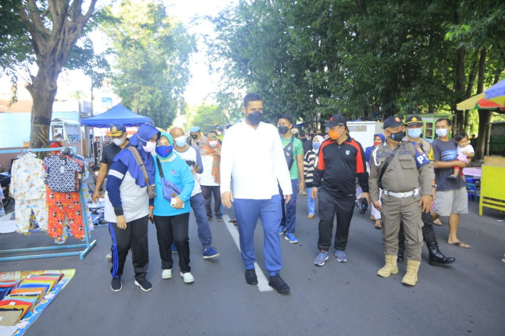 Wali Kota Probolinggo, Habib Hadi Zainal Abidin bersama Sekda drg. Ninik Ira Wibawati dan sejumlah Kepala PD (Perangkat Daerah) dan pihak kepolisian, melakukan edukasi kepada para pedagang maupun pengunjung Pasar Tugu dan memastikan penerapan protokol kesehatan.