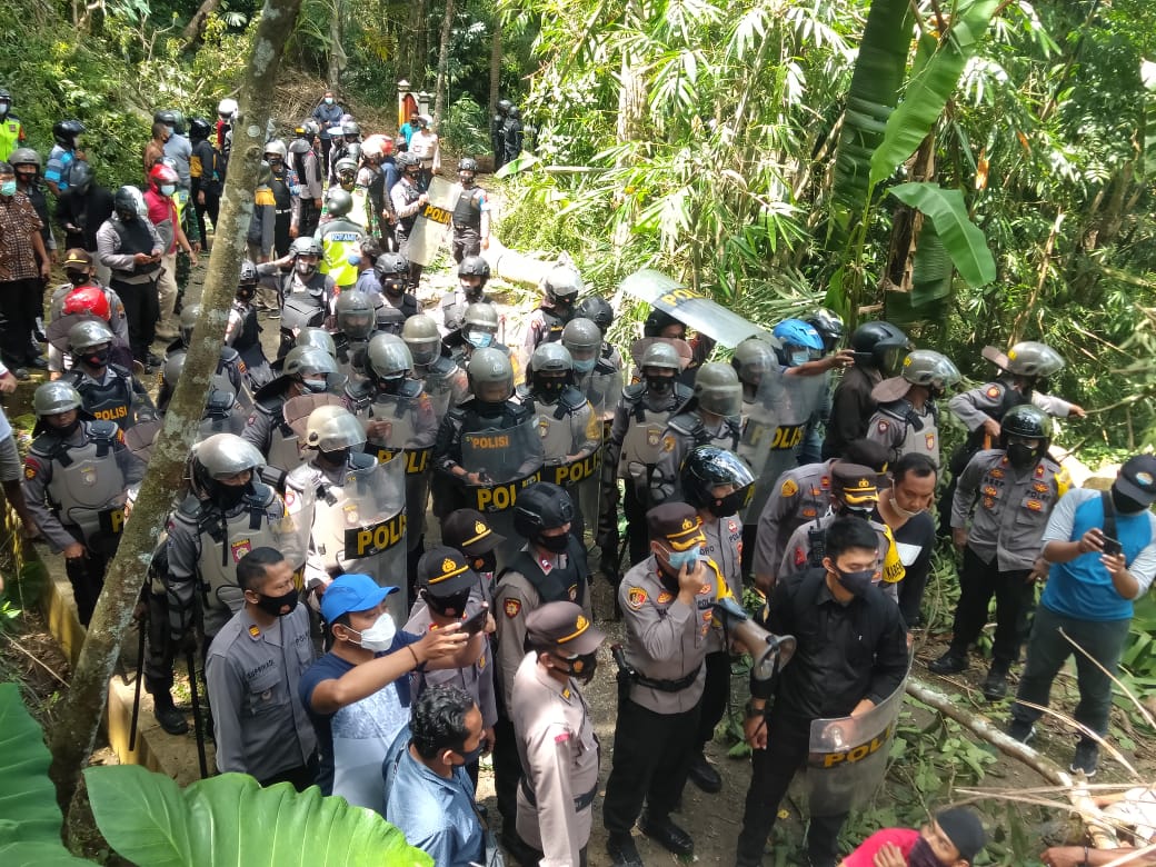 “Kami mendapat laporan jika terjadi penutupan jalan di Desa Wadas, maka kami bersama petugas kepolisian dibantu Brimob Kutoarjo dan anggota Kodim 0708 datang kelokasi untuk membuka jalan itu,” ungkap Kapolres Purworejo, AKBP Rizal Marito, saat ditemui dilokasi kejadian.
