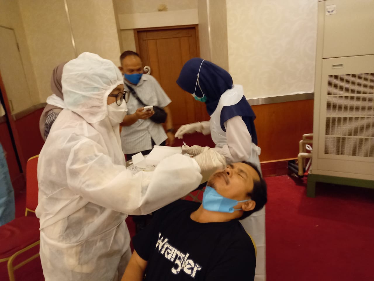 “Acara ini kita pastikan terlaksana sesuai dengan protokol kesehatan, mendukung apa yang menjadi target pemerintah mencegah dan mengendalikan persebaran Covid-19”, kata dr. Ozi di sela-sela memantau prosesĀ swab.