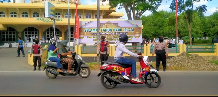 Pengamanan pawai dalam rangka perayaan tahun baru Islam 1444 Hijrah yang dilaksanakan MAN 1 Jeneponto.