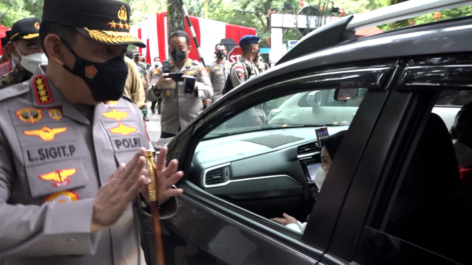 Usai meninjau akselerasi percepatan vaksinasi se-Indonesia, Sigit menyempatkan diri untuk menuju pintu gerbang utama kebun binatang tersebut guna memastikan penerapan prokes telah berjalan dengan ketat untuk masyarakat yang berkunjung.