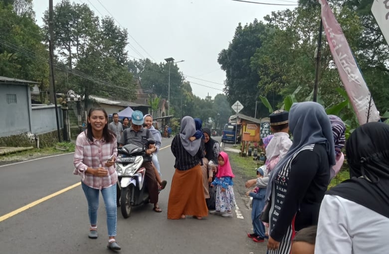 Kurang lebih seratus takjil berupa kolak kacang hijau dibagikan kepada pengguna jalan yang melintas di depan sekolah KB Melati desa Sukapura.