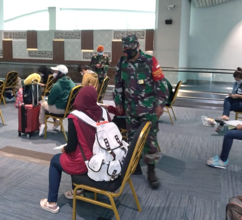 Danramil 02/Btc Mayor Inf Deni Suryo AD menyampaikan, himbauan tersebut untuk para calon penumpang pesawat, agar menaati peraturan pemerintah tentang kesehata dan pencegahan penyebaran virus Covid-19.