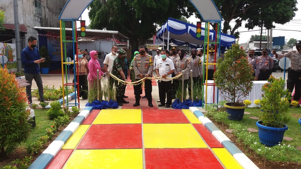 PENJURU.ID | Cilegon – Kapolres Cilegon AKBP Yudhis Wibisana meresmikan taman lalu lintas untuk usia dini di Polsek Anyar, Kamis (13/8/2020).