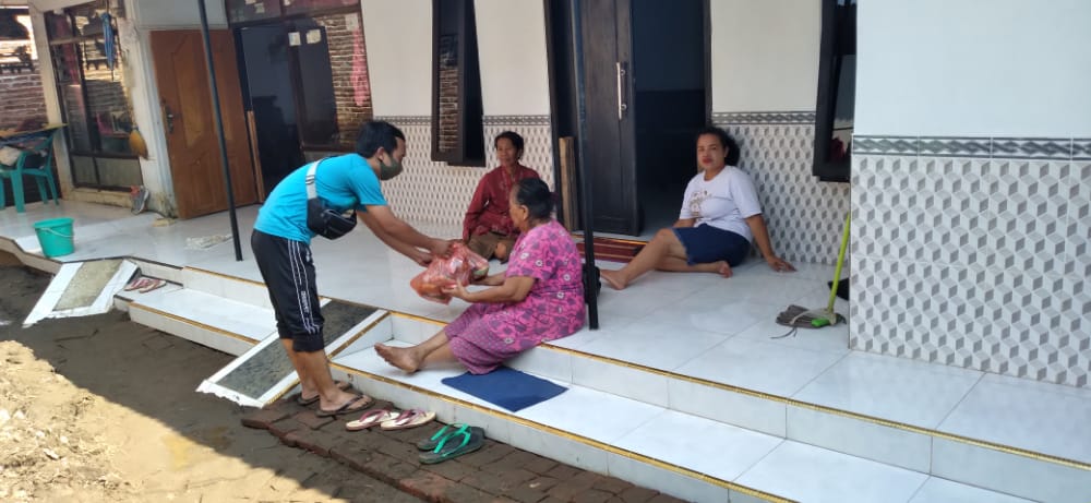 Ma’at, S.AB (42) selaku Ketua Paguyuban Peduli Banjir Dringu, menerangkan sebanyak 100 paket sembako dan 100 masker diberikan ke warga secara langsung dengan cara door to door.