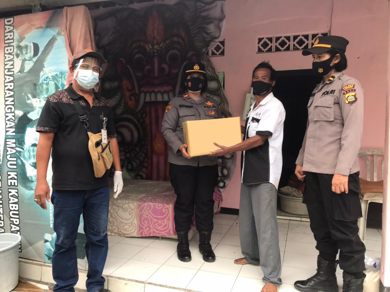 “Polres Klungkung bagikan paket sembako kepada warga yang membutuhkan, tak hanya itu yang lebih penting saat penyaluran paket sembako tetap memperhatikan protokol kesehatan, mempergunakan masker dan menjaga jarak .(Nayaka Pidada )
