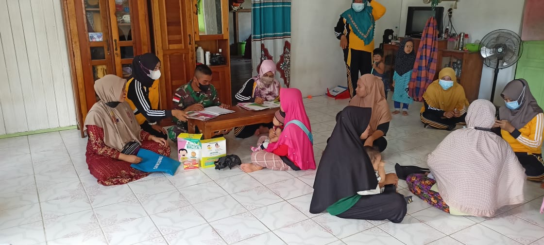 PENJURU.ID | Sambas – Peduli dengan kesehatan Ibu dan Balita di wilayah perbatasan, Satgas Pamtas Yonif Menkanis 643/Wanara Sakti, membantu pelaksanaan Posyandu di Dusun Sempadan, Desa Temajuk, Kec. Paloh, Kab. Sambas.