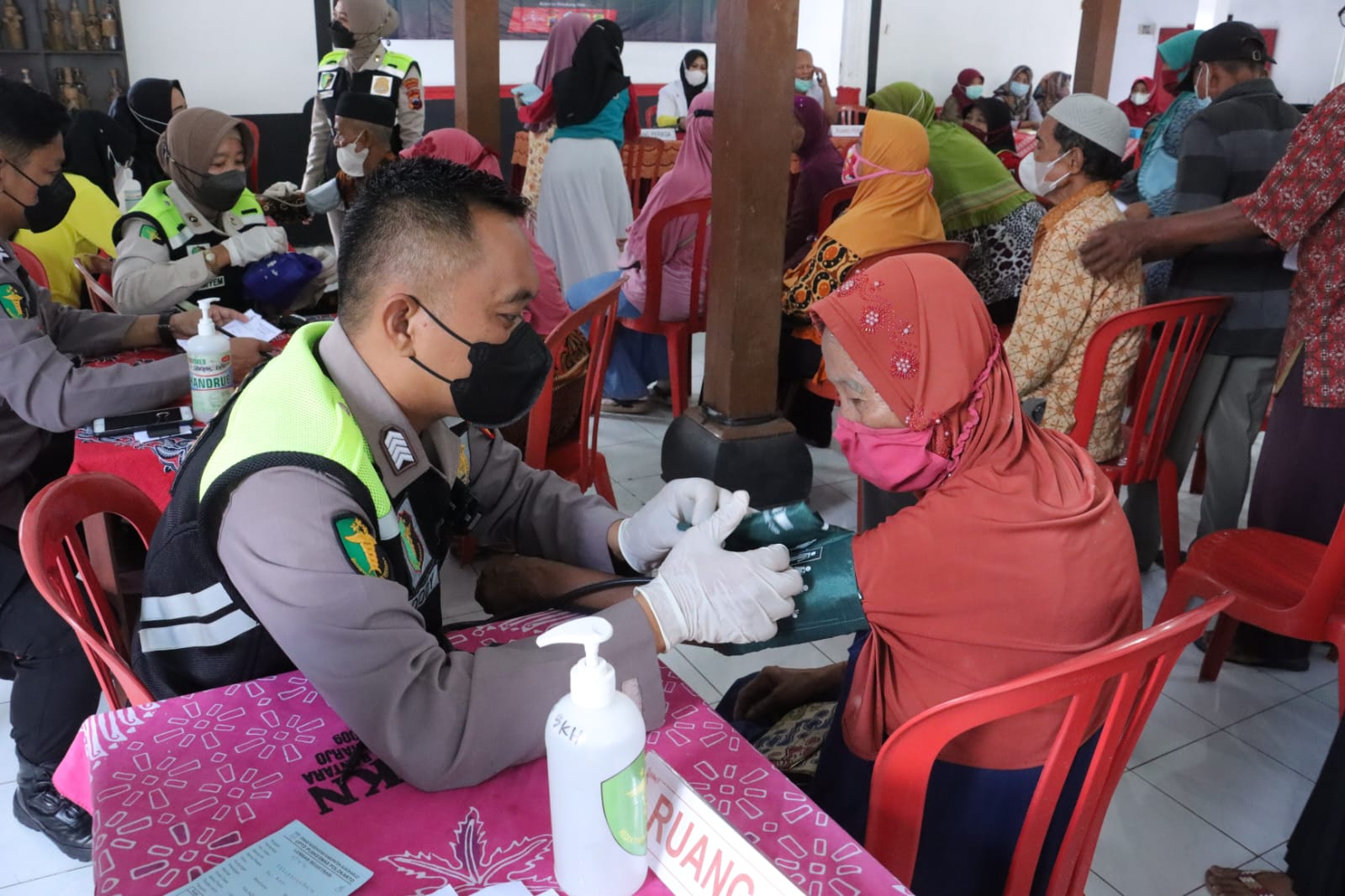 “Alhamdulillah antusias masyarakat begitu tinggi dalam mengikuti bakti kesehatan pengobatan gratis ini. Masyarakat yang hadir kurang lebih seratusan orang,” ujar Kasat Samapta AKP Sri Haryanto, mewakili, Kapolres Sukoharjo AKBP Wahyu Nugroho Setyawan.