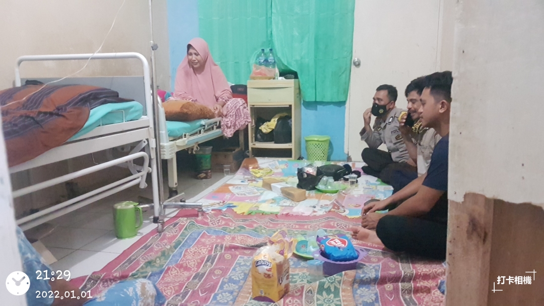 PENJURU. ID | Jeneponto – Bhabinkamtibmas Desa Bonto Ujung dan Tino Brigpol Muh Djosan Djohar besuk warganya yang dirawat di Puskesmas Tino, Sabtu (1/1/2022)