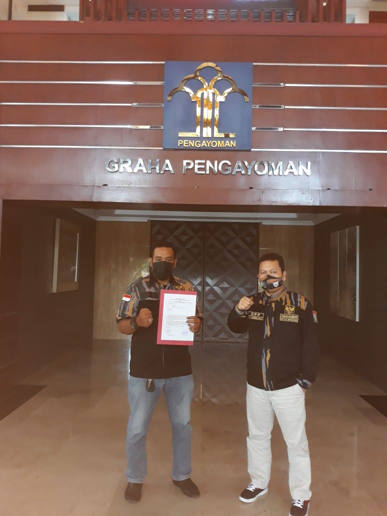 PENJURUID|JAKARTA–Ketua Infokom DPP Pekat IB Lisman Hasibuan mendatangi Kantor Menkumham dan Meminta Menteri Hukum dan HAM Yasonna Laoly mencopot Ditjen PAS dan Kalapas Sukamiskin