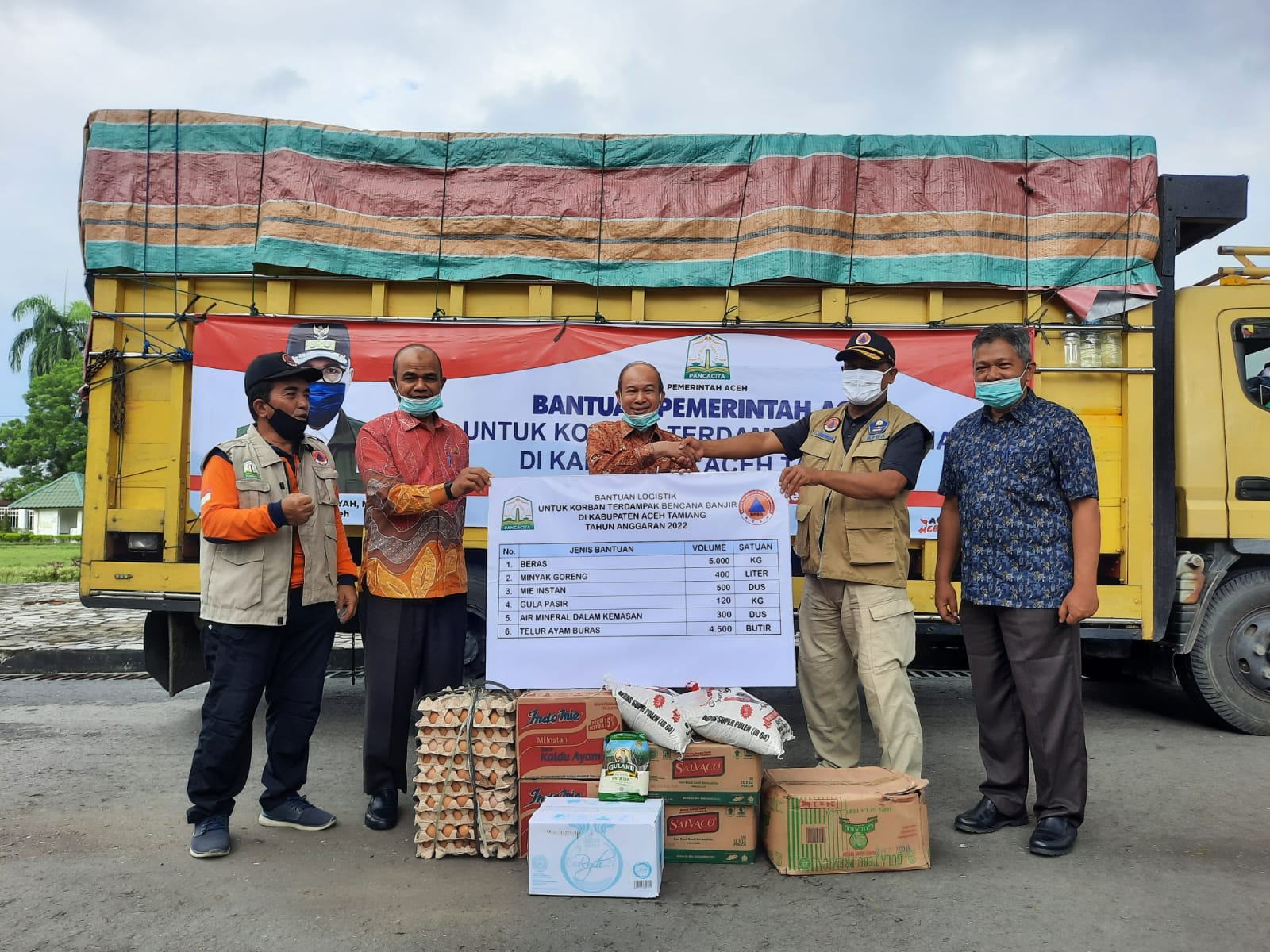 PENJURU.ID | Aceh Tamiang – Badan Penanggulangan Bencana Aceh, serahkan bantuan logistik Bencana banjir dari Gubernur Aceh dan diterima oleh Bupati Aceh Tamiang, Mursil, SH, M.Kn, didampingi Wakil Bupati, Tengku Insyafuddin, ST di halaman Pendopo. Kamis (6/1/2022).