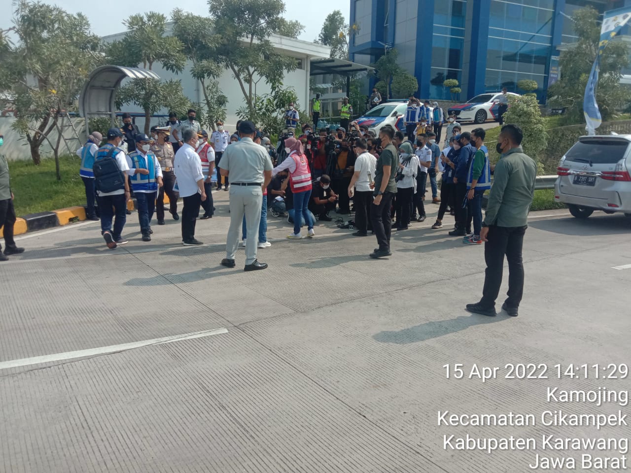 PENJURU-ID,CIKAMPEK.-Pemerintah melalui Kementrian Perhubungan,Badan Pengatur Jalan Tol (BPJT),Jasa Raharja dan Jasa Marga,melakukan pengecekan kesiapan mudik lebaran tahun 2022 di luas Tol Jakarta-Cikampek,Jum’at(15/04/2022).