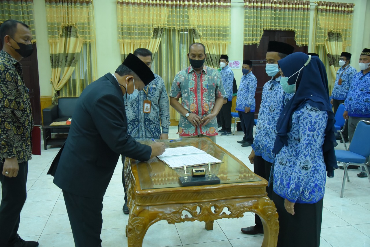 PENJURU.ID | Aceh Tamiang – Sekretaris Daerah, Drs. Asra, mengambil sumpah jabatan dan melantik 282 pejabat fungsional yang diangkat melalui mekanisme penyetaraan di lingkungan Pemerintah Kabupaten Aceh Tamiang. Sebanyak 41 orang dilantik di aula Setdakab yang disaksikan oleh sejumlah Kepala SKPK, selebihnya mengikuti pelantikan di OPD masing-masing melalui saluran virtual.bKamis (6/1/2022).