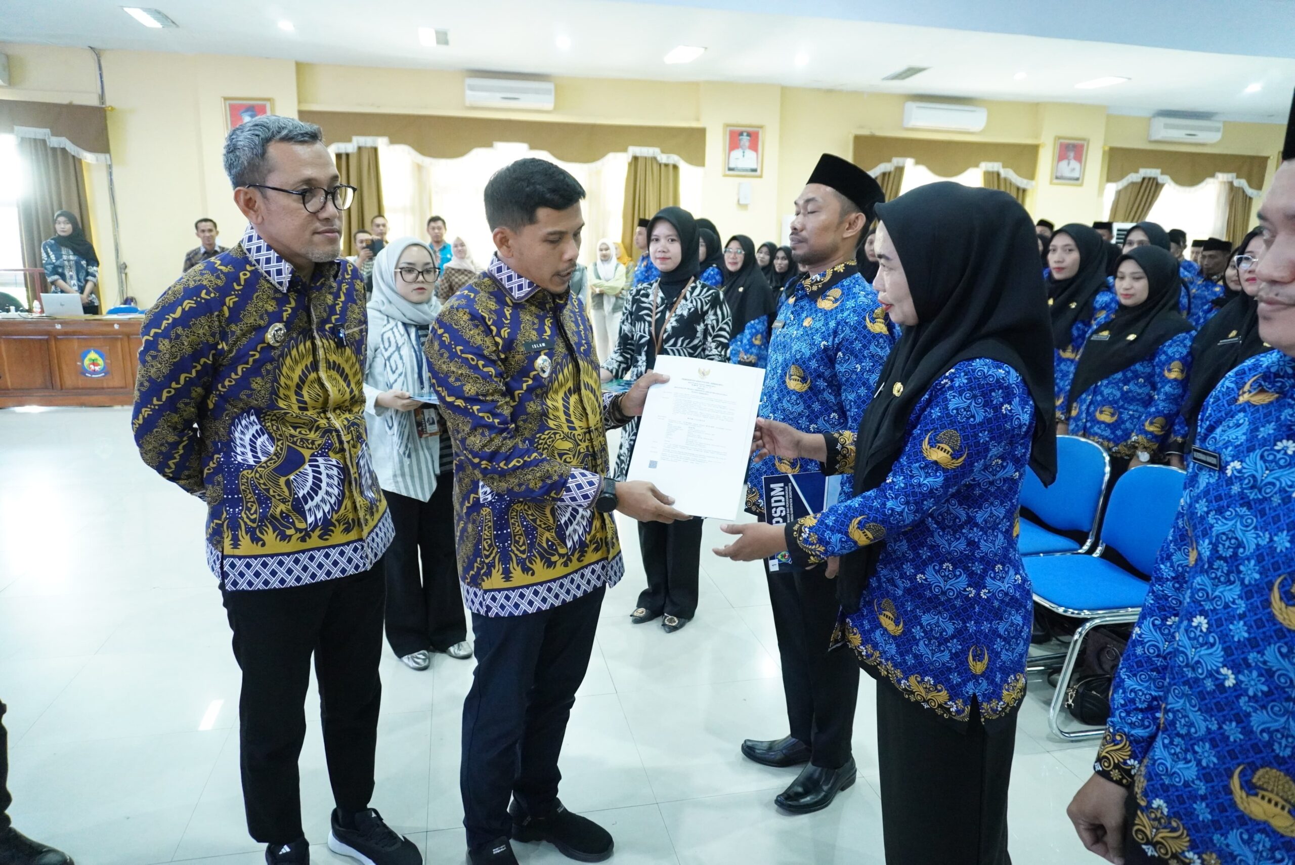 PENJURU. ID | Jeneponto – Pemerintah Kabupaten Jeneponto secara resmi menyerahkan Surat Keputusan (SK) Pegawai Pemerintah dengan Perjanjian Kerja (PPPK) Tahun Anggaran 2024 kepada 164 orang ASN dalam sebuah upacara yang digelar di Ruang Pola Kantor Bupati Jeneponto, Kamis (19/6/2025).