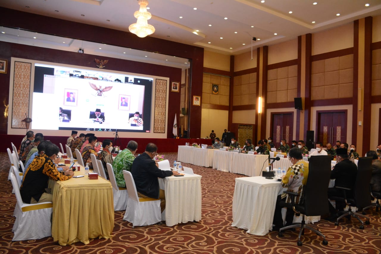 Dalam kesempatan tersebut Gubernur Provinsi Kepri H. Ansar Ahmad, SE, MM, mengatakan sesuai arahan dari Bapak Presiden kepada kita semua serta Forkopimda tentang persentase penyebaran Virus Covid – 19 diwilayah Kepri untuk itu Saya berharap kita semua dapat berkejasama dalam mengambil langkah meminimalisir penyebaran virus Covid-19 ini.