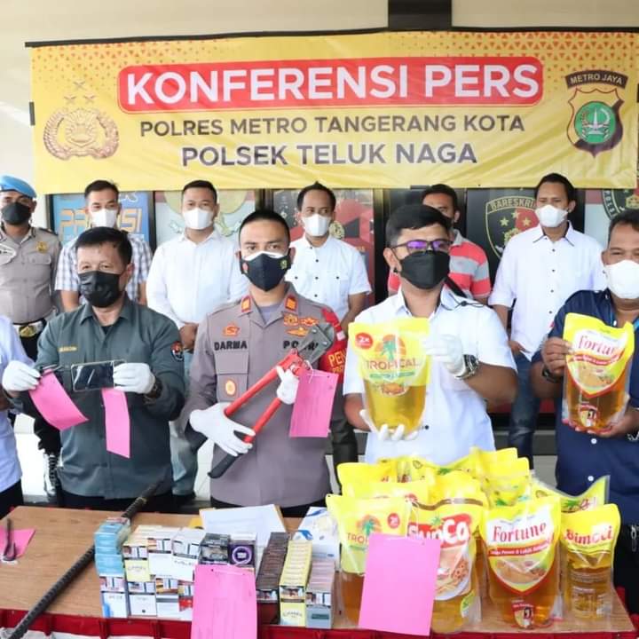 Kapolsek Teluknaga AKP Darma Adi Waluyo dalam Konferensi Pers bersama Kasie Humas Polres Metro Tangerang Kota Kompol Abdul Rachim dan Kanit Reskrim IPDA Adityo menjelaskan kronologi pengungkapan kasus Pembobolan Indomaret dan Alfamart sepanjang September hingga Januari dengan 12 TKP itu.