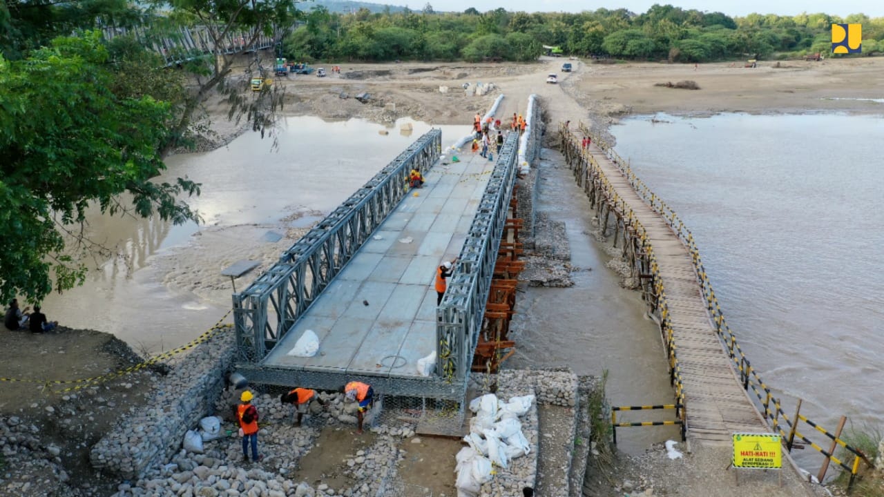 PENJURU.ID | Jakarta – Kementerian Pekerjaan Umum dan Perumahan Rakyat (PUPR) telah menyelesaikan pemasangan Jembatan Bailey untuk penanganan sementara Jembatan Benanain yang rusak akibat bencana banjir di Kabupaten Malaka pada April 2021 lalu. Diharapkan dengan selesainya jembatan semi permanen ini dapat membantu masyarakat dalam melaksanakan aktivitas sehari-hari serta memperlancar distribusi logistik antar wilayah di Provinsi Nusa Tenggara Timur (NTT).