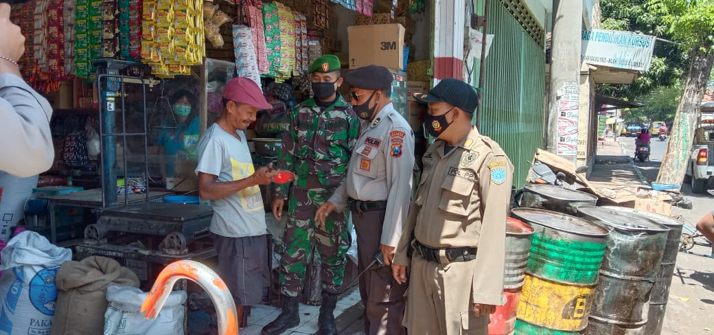Bersama tim Satgas Covid tingkat Kecamatan Krucil, Kabupaten Probolinggo, anggota Koramil 0820/25 Krucil melaksanakan operasi penegakan disiplin Prokes di pasar tradisional, Serda. Adi Bahrudin, Anggota Koramil 0820/25 Krucil mengatakan bahwa dalam operasi yang bersifat persuasif humanis tersebut pihaknya juga memberikan himbauan dan pengetahuan tentang bahaya Covid -19 dengan mengelilingi area pasar.