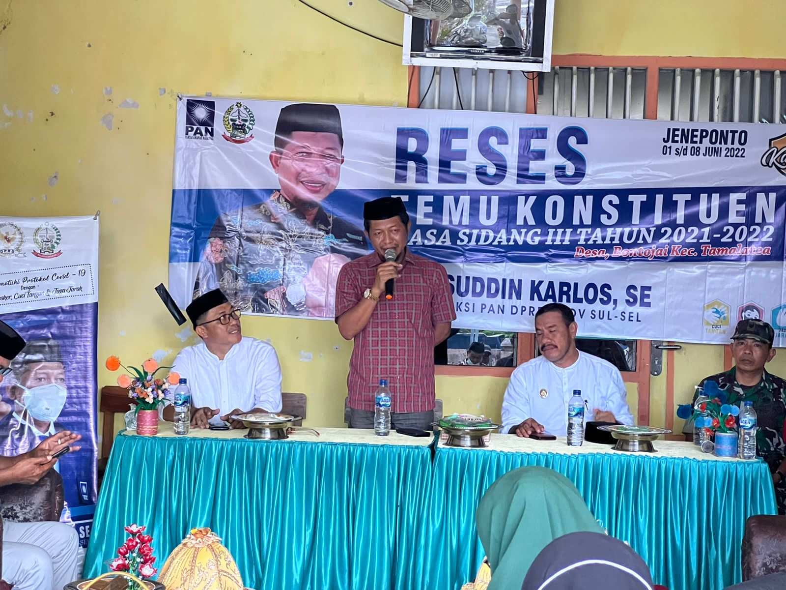 PENJURU. ID | Jeneponto – Legislator PAN Syamsuddin Karlos kembali melakukan reses masa sidang III Tahun 2021-2022 di Desa Bontojai, Kecamatan Tamalatea, Kabupaten Jeneponto, Jumat (03/06/2022) sekitar pukul 13.00 wita.